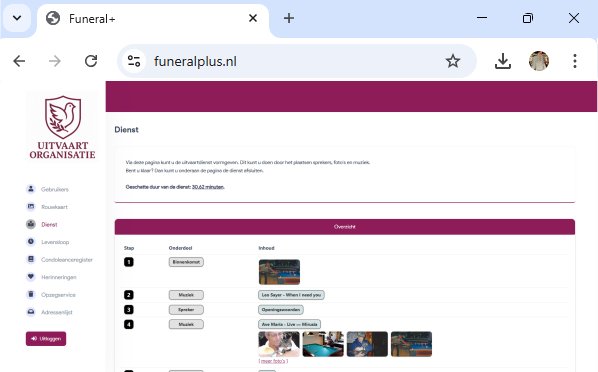 Met Funeral+ kunnen nabestaanden (met elkaar) de uitvaartdienst vormgeven. Muziek, foto’s, sprekers en teksten worden eenvoudig