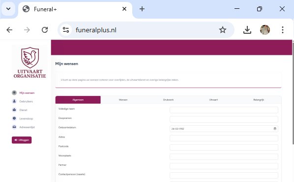 Funeral+ bied de mogelijkheid om een 'Voorgesprek' aan te maken. Hiermee kunnen door de gebruiker alvast de wensen