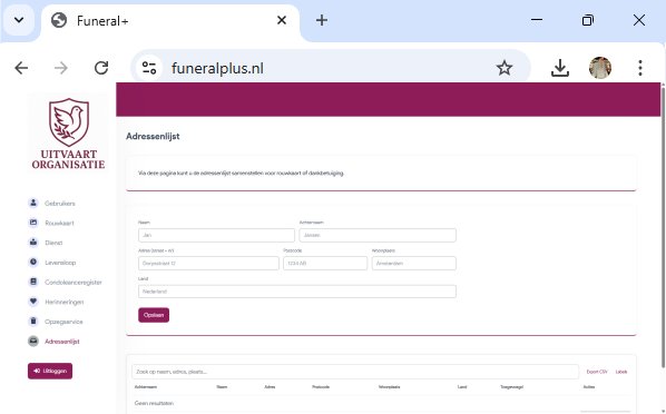 Via de adressenlijst is het mogelijk om adressen te verzamelen voor rouwkaart of dankbetuiging. Doordat postcode en