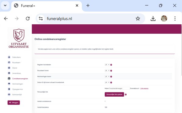 Funeral+ biedt de mogelijkheid om een condoleanceregister te openen voor de overledene in kwestie. Via een persoonlijke link,